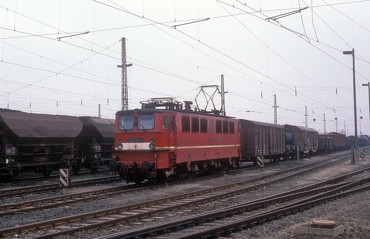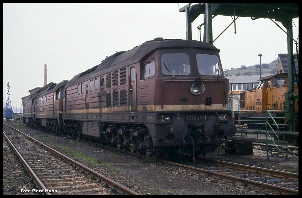 Am 29.03.1991 war das BW Vacha noch voll intakt und gut mit Loks bestückt. U. a. ist hier 131034 zu sehen.