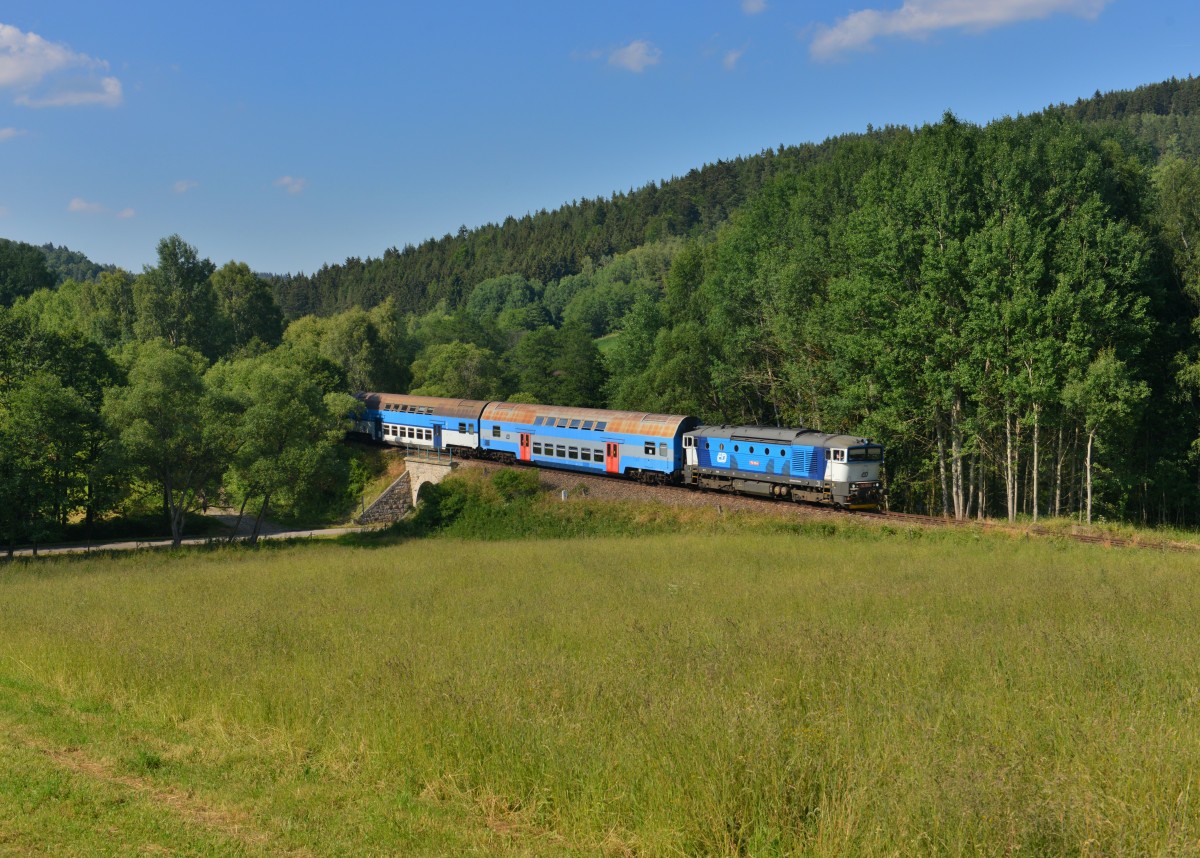 750 705 mit einem Os am 01.07.2015 bei Horice na Sumave.