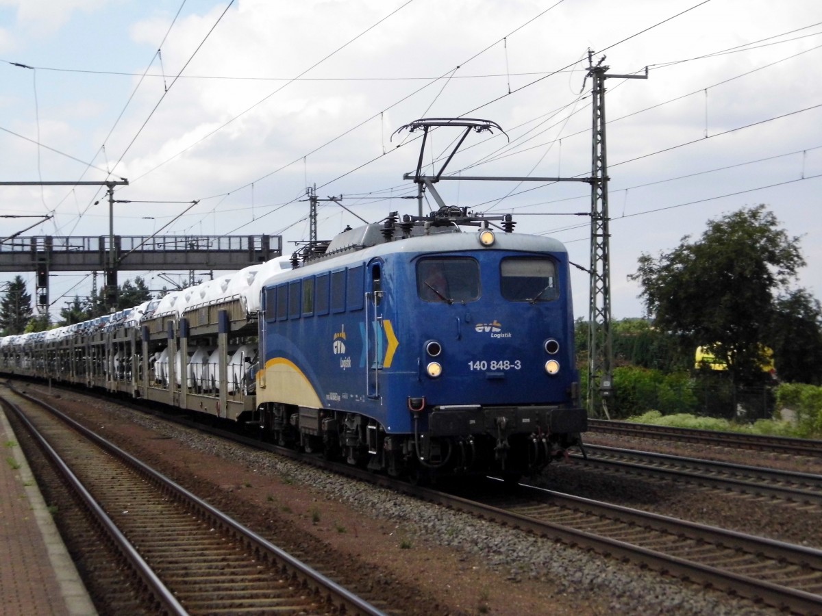 Am 23.07.2015 kam die 140 848-3 von der evb Logistik aus Richtung Braunschweig nach Niederndodeleben und fuhr weiter in Richtung Magdeburg .