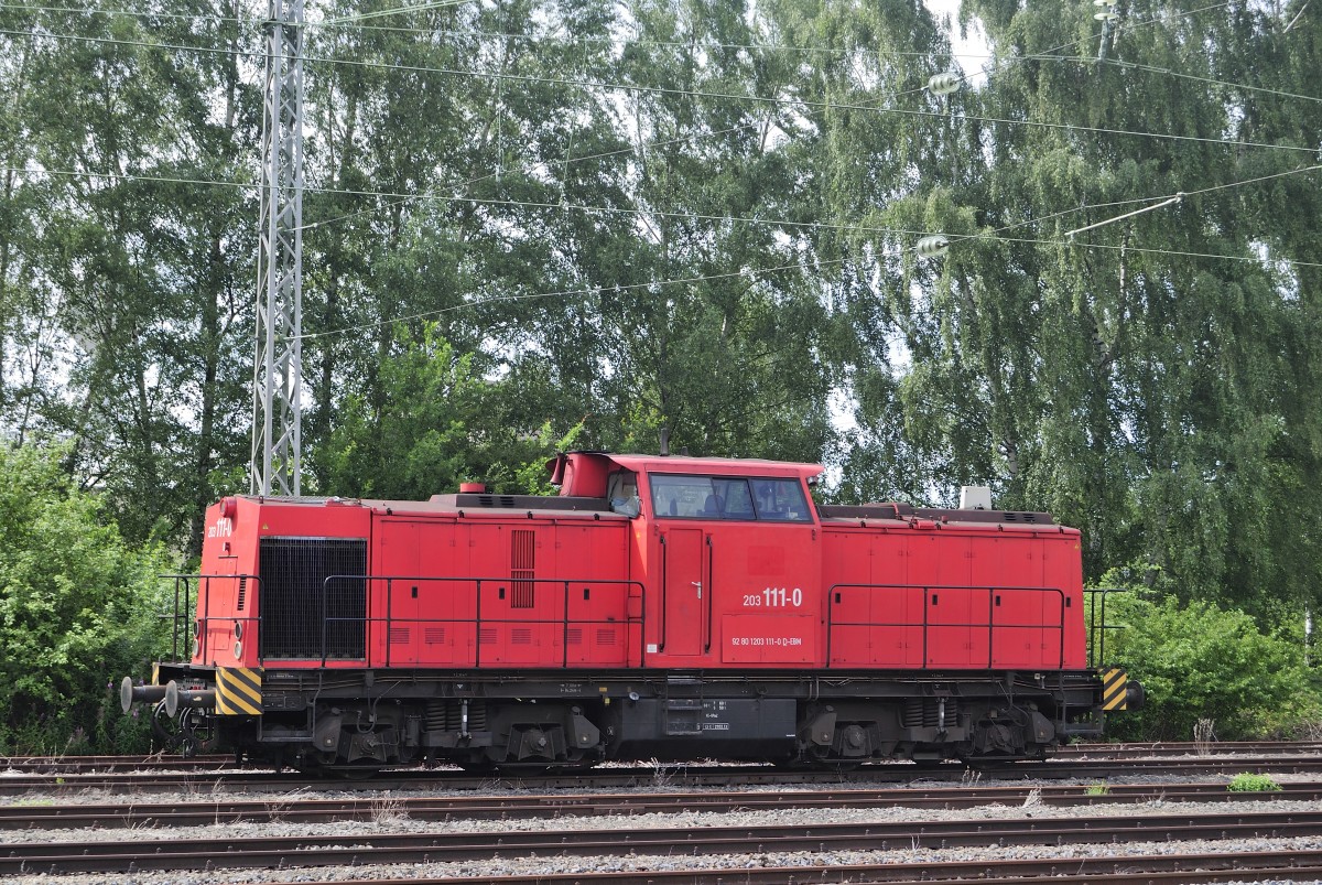 203 111-0 (92 80 1203 111-0 D-EBM) der EBM wartet im Bahnhof von Herzogenrath auf ihren Einsatz. Vom Bahnsteig aus fotografiert am 21/07/2015.
