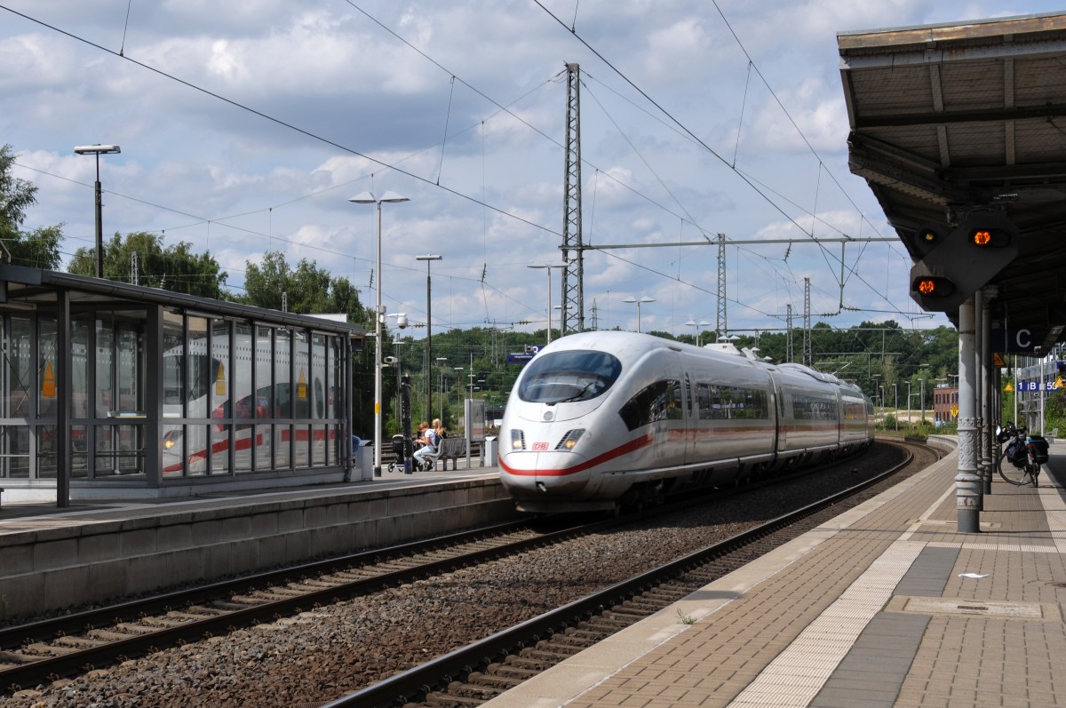 Am 13.07.2015 war ICE-Tz 0101 "Gießen" als ICE 880 von München nach Hamburg unterwegs. Hier zu sehen ist der "zählende Kopf" 401 001-3 beim Halt in Göttingen.