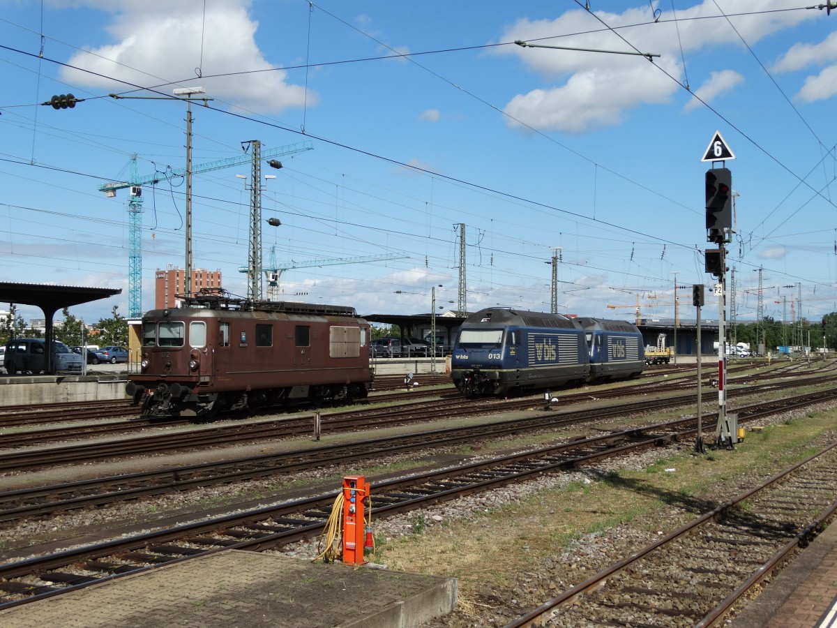 BLS Re 425 172 ,465 013 und 465 014 am 25.07.15 in Basel Bad Bhf vom Bahnsteig aus fotografiert