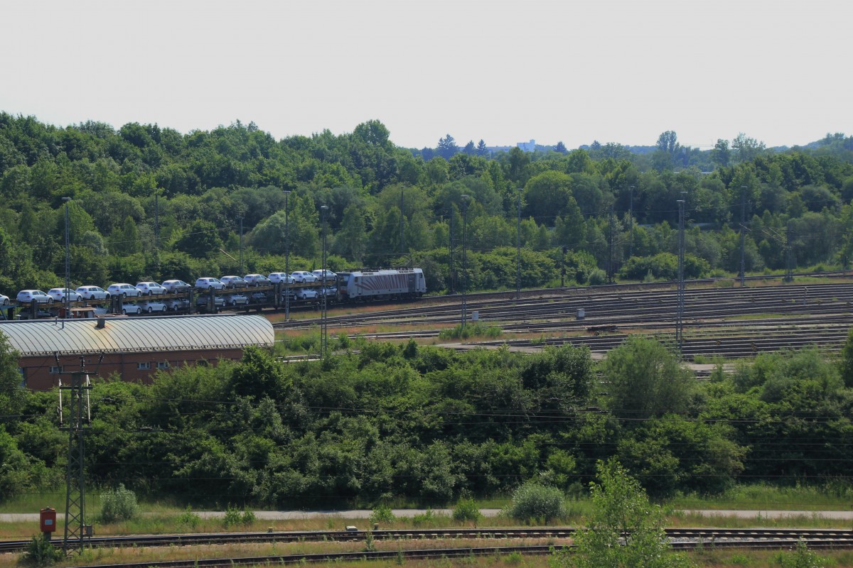 189 914 von Lokomotion zieht am 20.07.2015 einen Güterzug bei Günzburg.