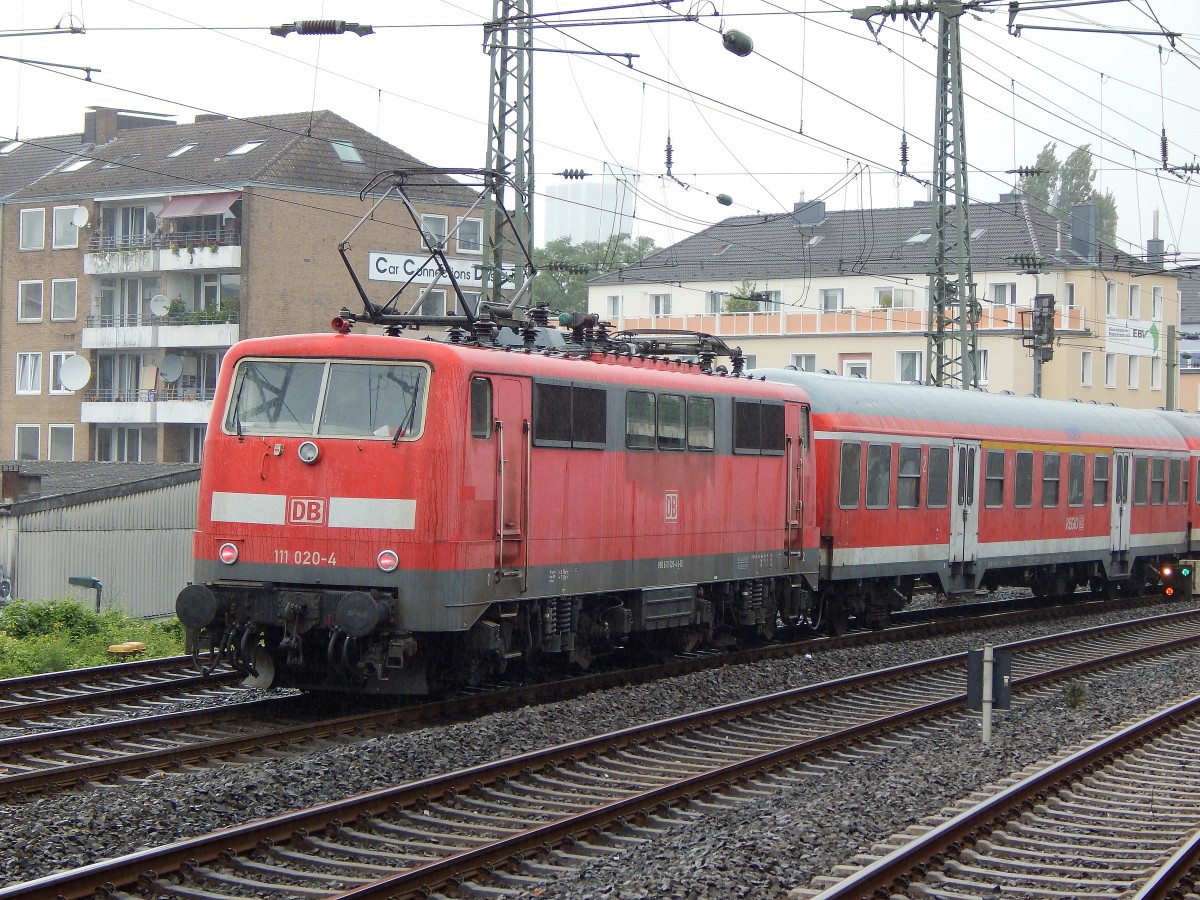Ex-Münchnerkindel.....111 020-4 zieht am Abend des 24. Juli 2015 einen RE4-Verstärker in Richtung Aachen.
