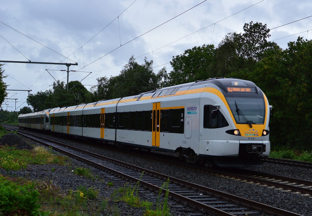 Hier kommt ein vom ET 6.01 geführter RE 13 Zug nach Hamm durch Korschenbroich am Samstag den 25.7.2015 gefahren.