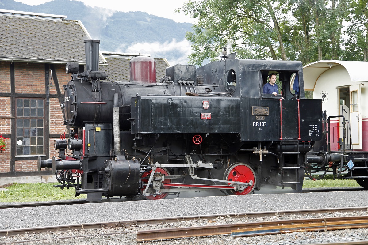 88.103 bei der Scheinanfahrt nächts der Halltestelle Carnica am 26.07.2015.