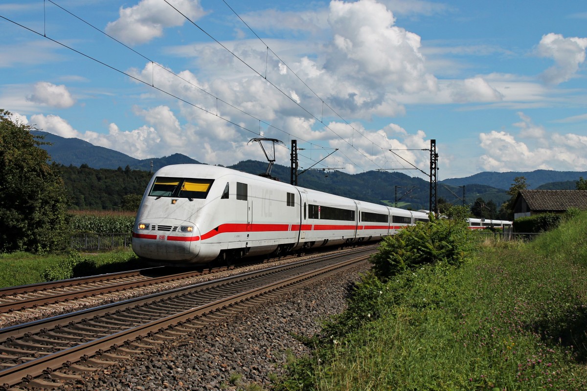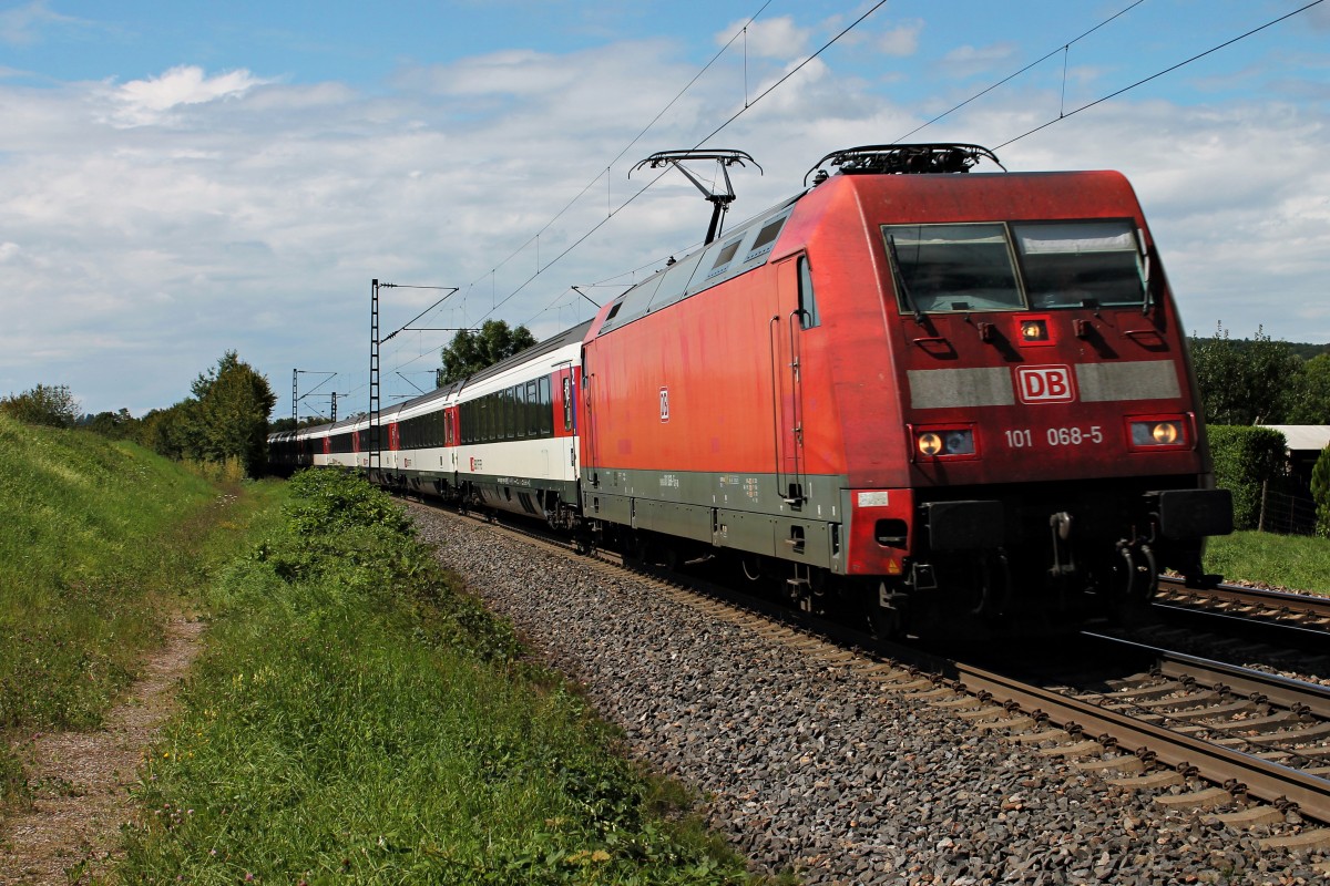 101 068-5 am 08.08.2014 mit dem EC 9 (Hamburg Altona - Zürich HB) bei Kollmarsreute auf dem Weg zum nächsten Zwischenhalt in Freiburg.