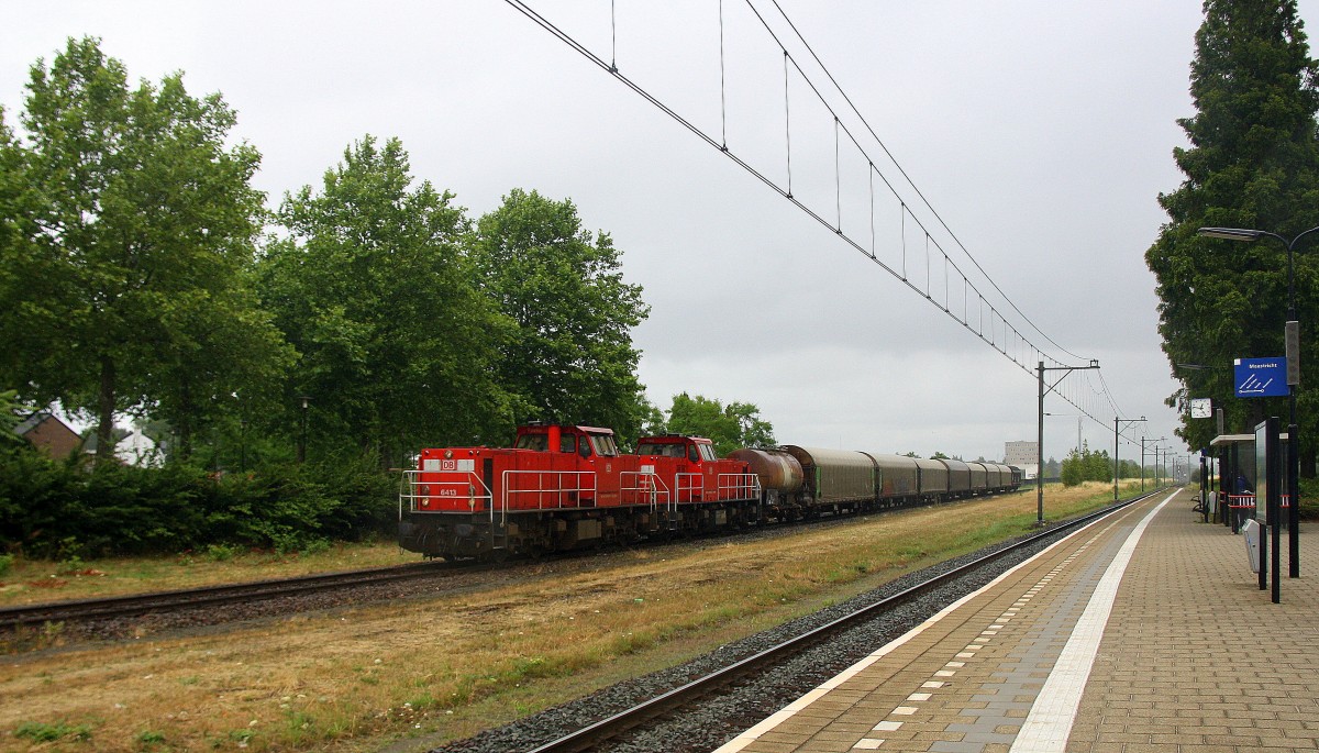 6413 "Foeke" und 6433 "Han" beide von DB Schenker kommen mit einem Kurzen gemischten Güterzug aus Köln-Gremberg(D) nach Geleen-Lutterade(NL) und fahren in Geleen-Lutterade(NL) ein.
