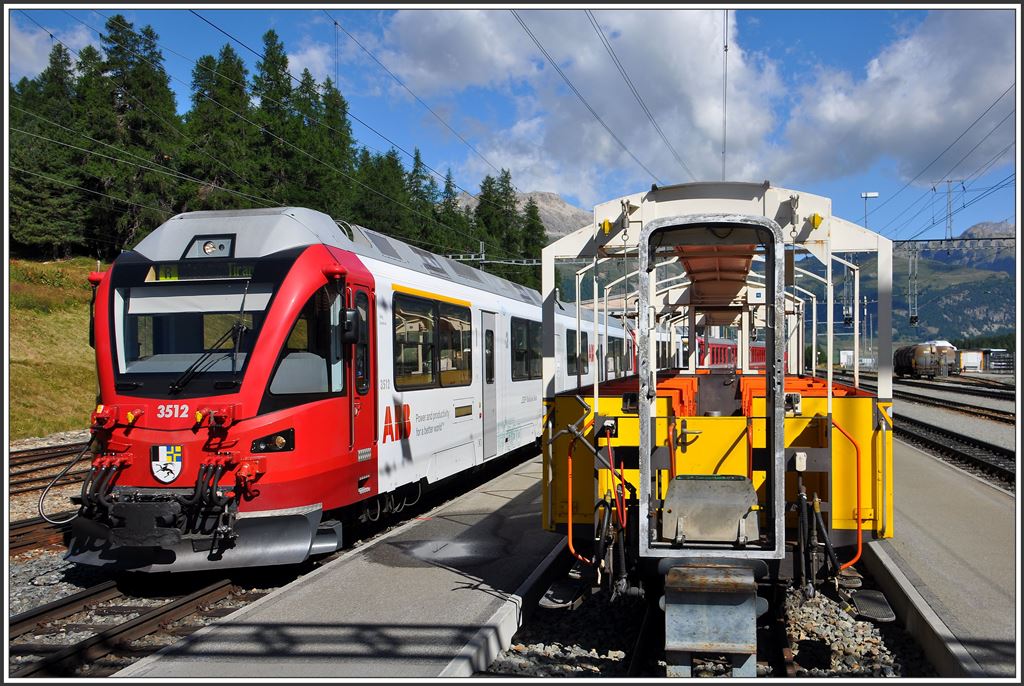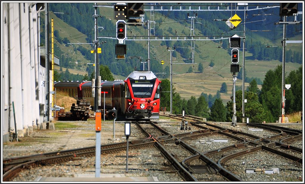 R1921 mit Allegra 3512 aus St.Moritz fährt in Pontresina ein. (27.07.2015)