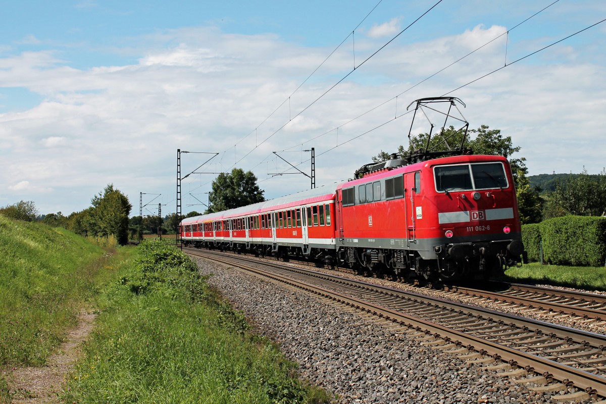 Ausfahrt am 08.08.2014 von der Freiburger 111 062-6 "1000 Jahre Gundelfingen" mit einer RB (Schliengen - Offenburg) in Richtung Emmendingen.