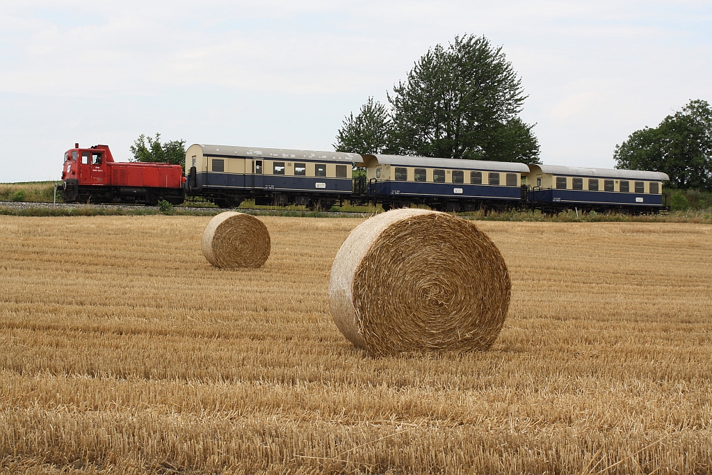 Nachschuss auf den Störtebeker-Express mit seinen 1.-Klasse-Wagen der DDR-Reichsbahn (Eberswalde, 25.7.15).