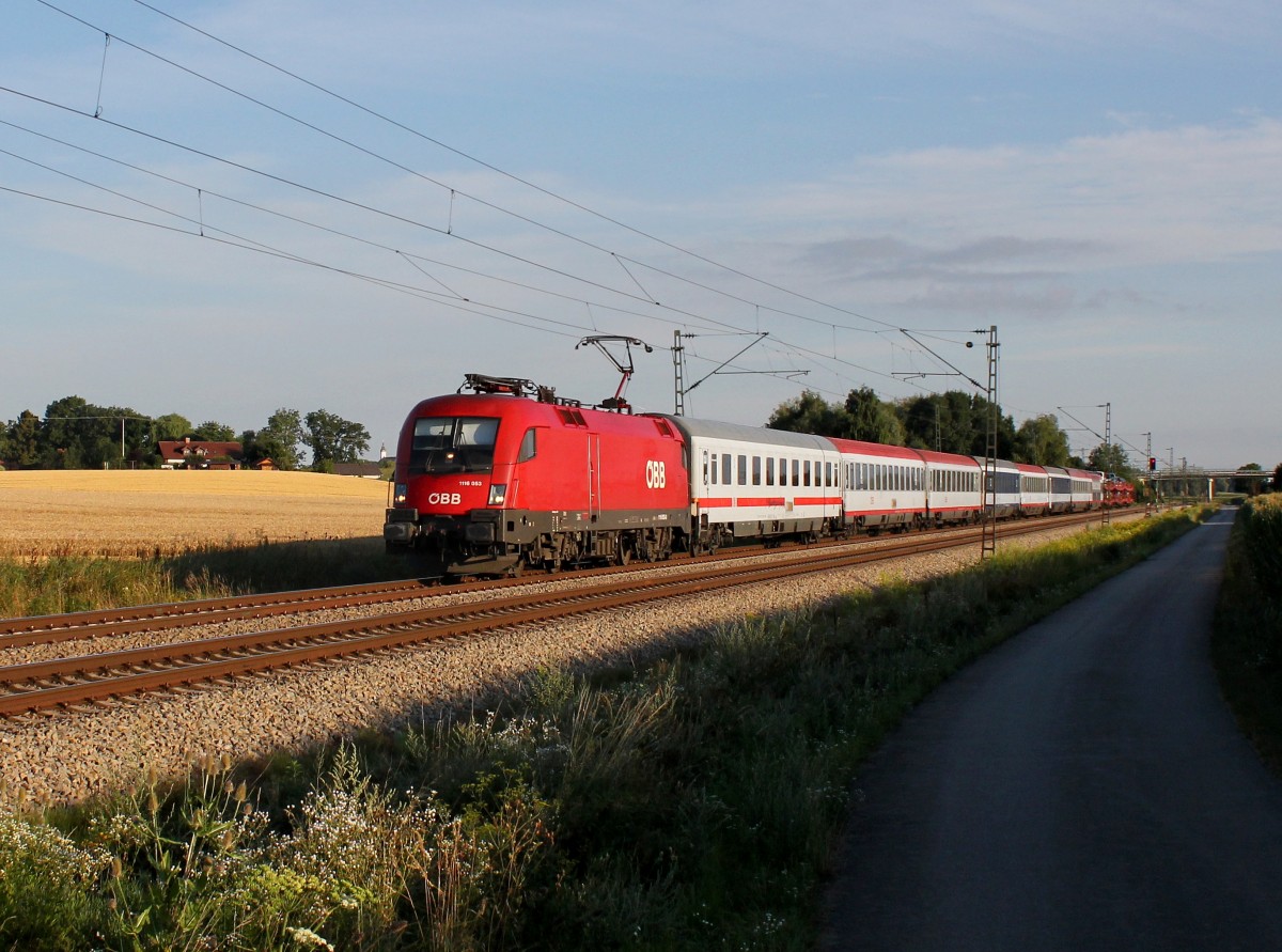 Die 1116 053 mit einem Nachtzug nach Wien am 26.07.2015 unterwegs bei Unternberg.