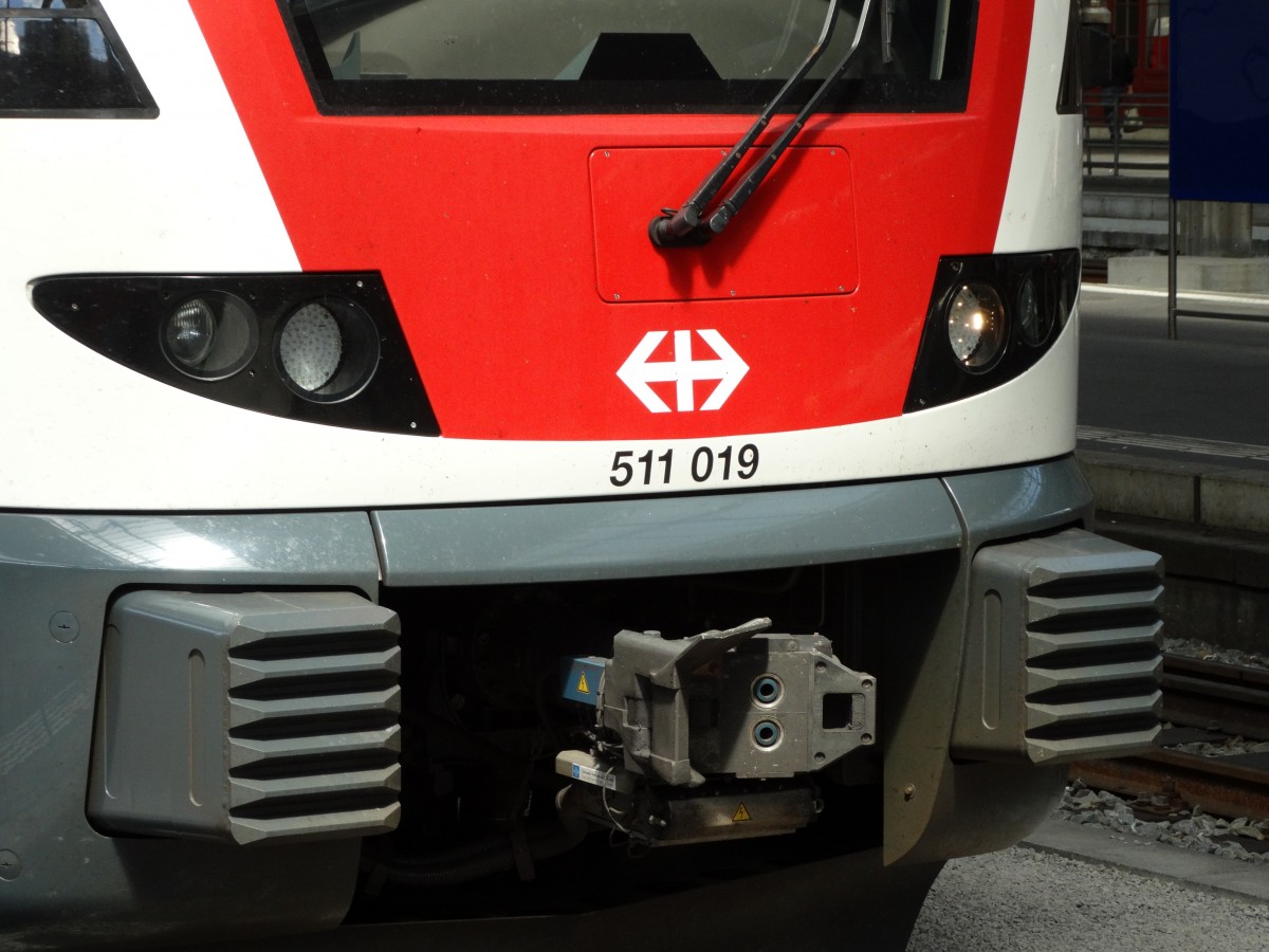 Die Front eines SBB RABe 511 am 25.07.15 in Basel SBB Bhf