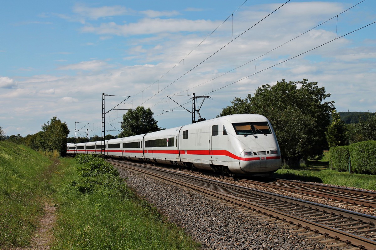 Nachschuss auf 401 058-3 "Gütersloh" am 08.08.2014 als ICE 274 (Basel SBB - Berlin Ostbahnhof) bei Kollmarsreute. An diesem Tag fuhr der TK 401 058-3 und dem Tz52 mit dem TK 401 509-5 zusammen, da sich 401 558-2 in diesem Zeitraum zur Reparatur in Krefeld befand.