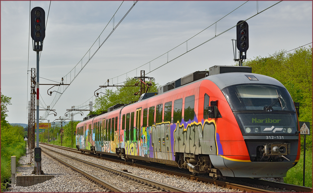 SŽ 312-131 fährt durch Maribor-Tabor Richtung Maribor HBF. /5.5.2015
