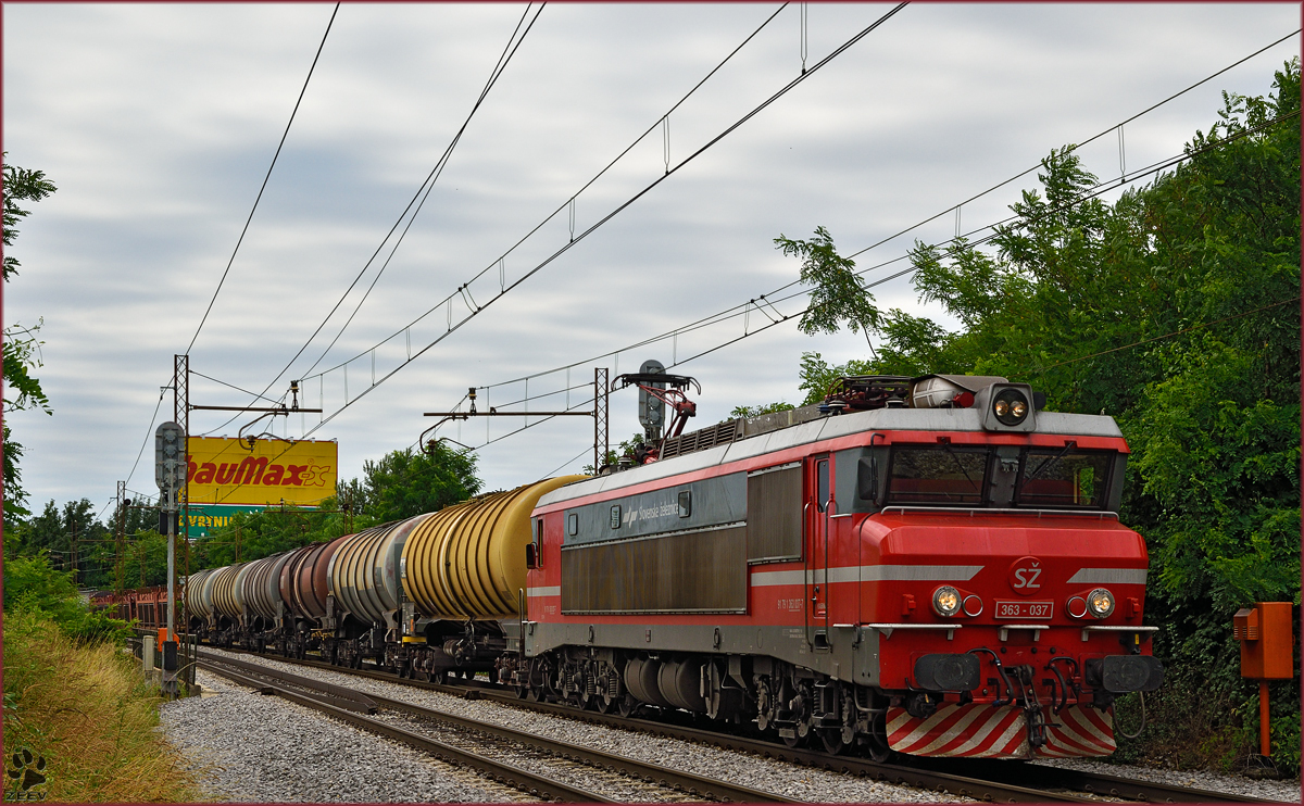 SŽ 363-037 zieht Güterzug durch Maribor-Tabor Richtung Norden. /9.7.2015