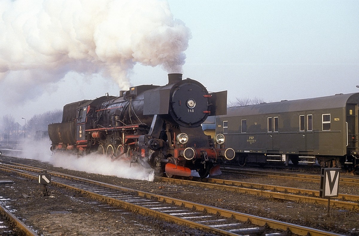 Singen (Hohentwil) an einem trüben 28.Februar 1969: Durchfahrt der Dampflok 50 3024.