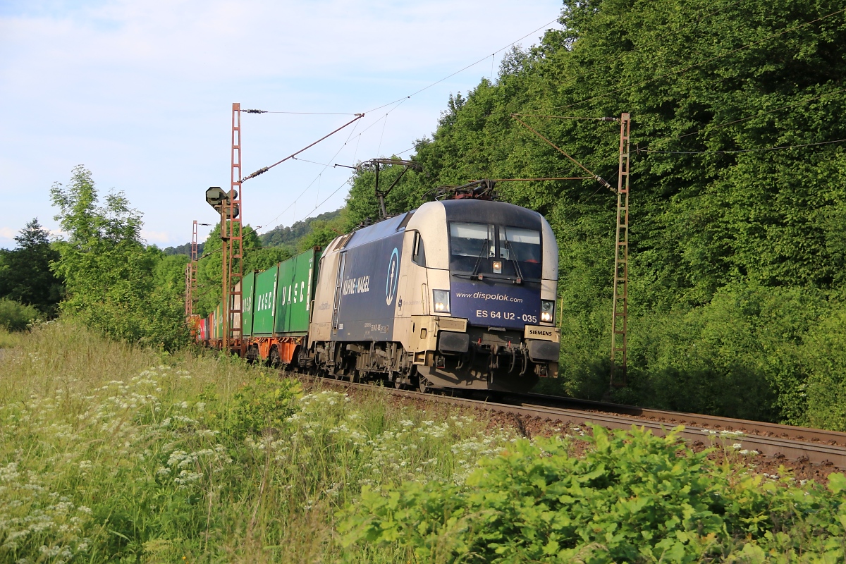 182 535-5 (ES 64-U2-035)  Kühne und Nagel  mit Containerzug in Fahrtrichtung Süden. Aufgenommen am 25.05.2014 zwischen Friedland(HAN) und Eichenberg.
