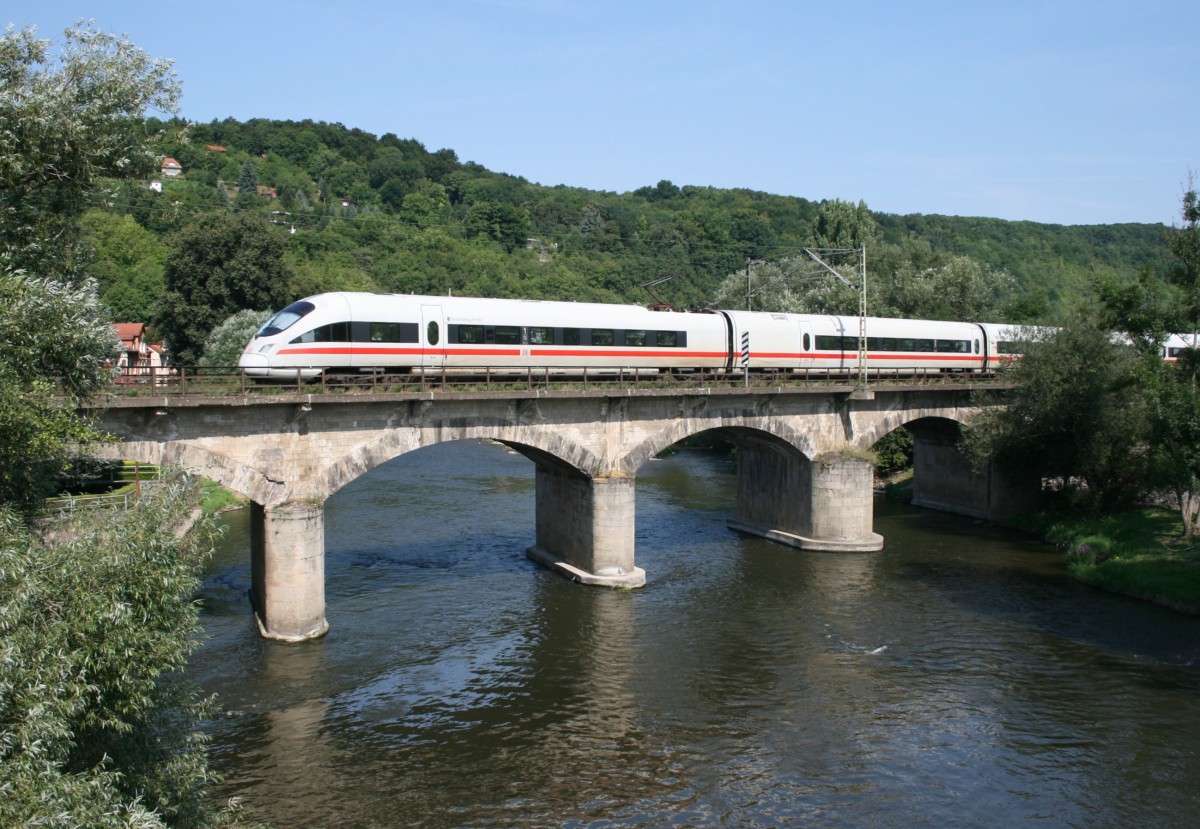 411 058 als ICE 1512 (München Hbf–Berlin–Hamburg-Altona) am 15.08.2013 auf der Saalebrücke in Bad Kösen