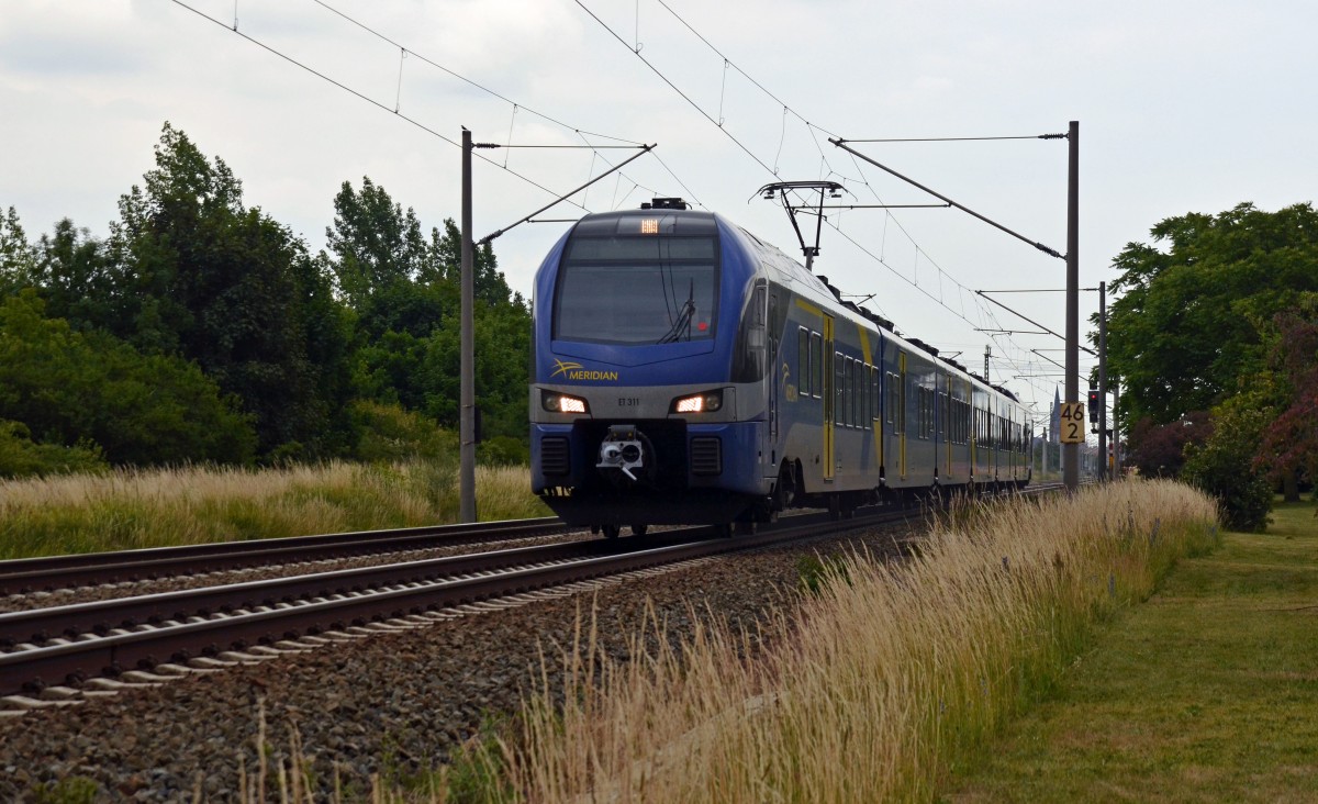 Der ET 311 des Meridian, welcher sonst zwischen München und Salzburg unterwegs ist, passierte am 21.06.15 Greppin Richtung Dessau.