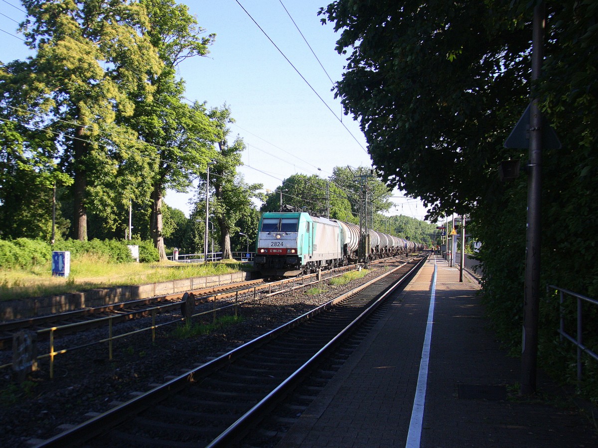 Die Cobra 2824 kommt als Umleiter aus Richtung Aachen-West mit einem einem langen gemischten Güterzug aus Antwerpen-Noord(B) nach Köln-Gremberg und fährt durch Kohlscheid in Richtung Herzogenrath,Neuss.