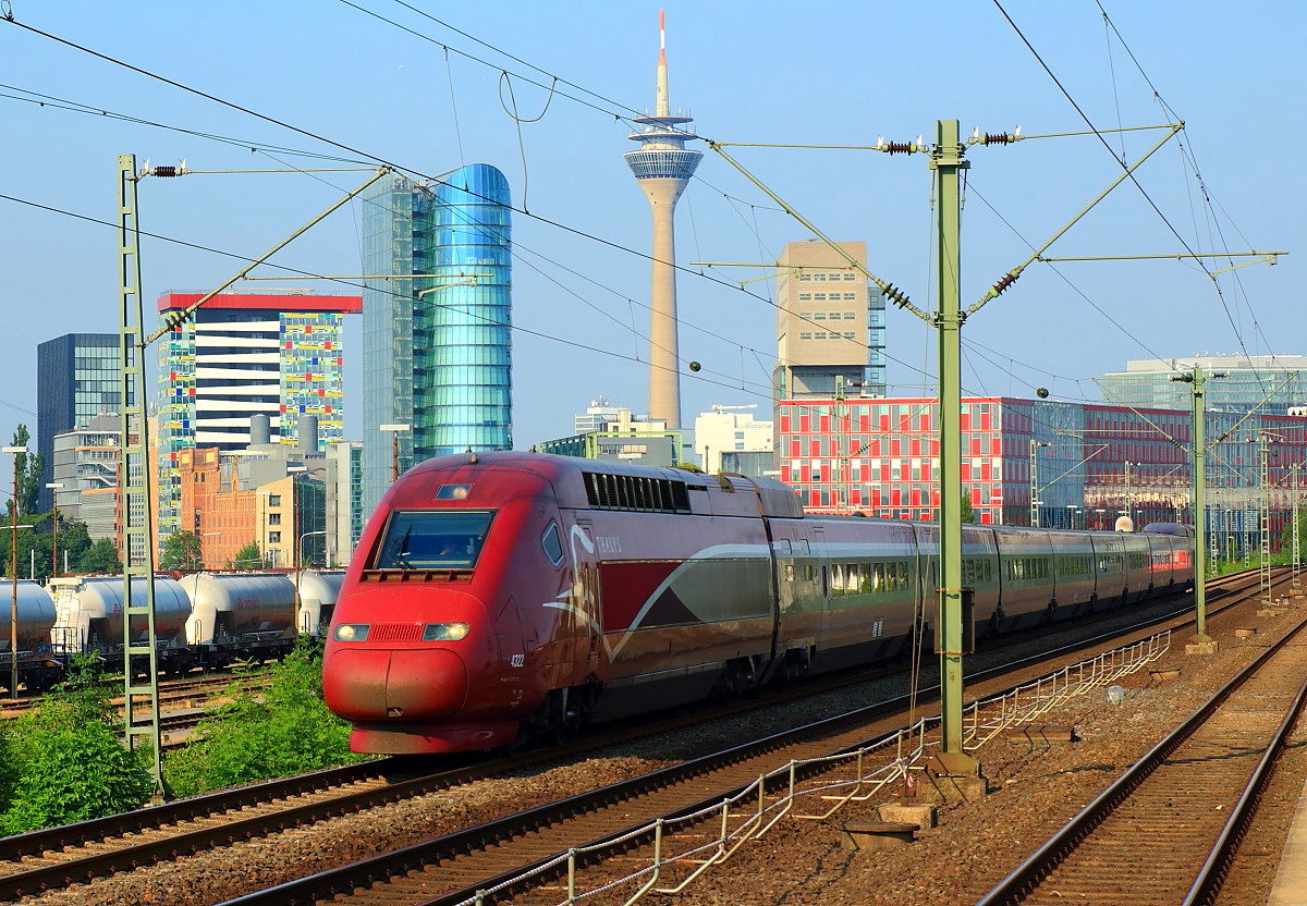 Am frühen Morgen des 02.Juli 2015 zischt der Thalys als Umleiter durch Kohlscheid. Szenario von der Kbs 485,wo aktuell größtenteils der Bahnverkehr von Aachen aus umgeleitet wird.