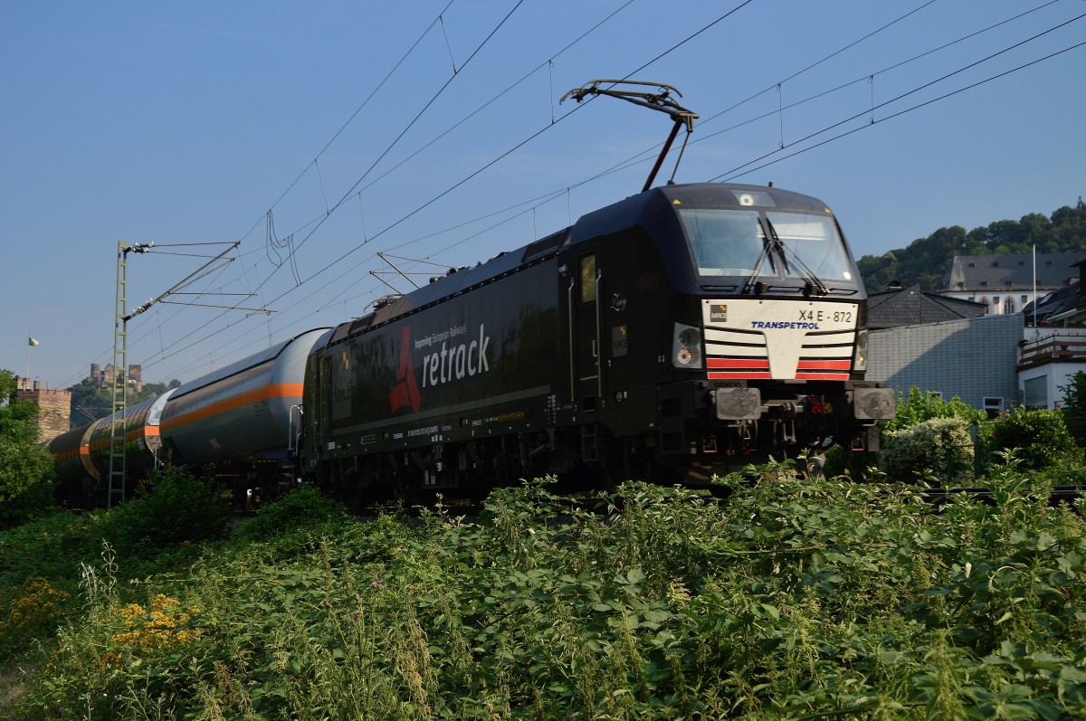 193 872-9 mit einem Kesselwagenzug durch Oberwesel gen Boppard. Freitag 3.7.2015