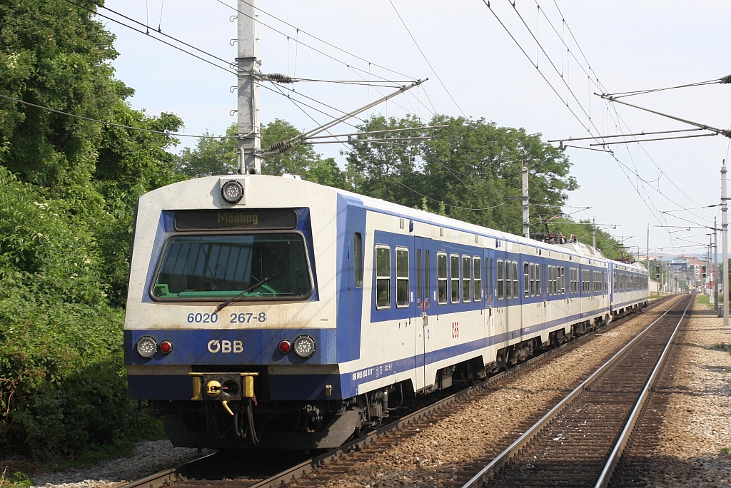 6020 267-8 am 05.Juli 2015 als erstes Fahrzeug des S2-Zug-Nr. 29367 von Wolkersdorf nach Mödling bei Perchtoldsdorf.