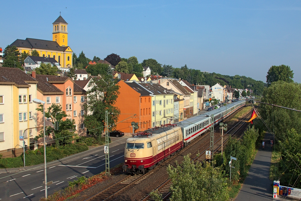 Am 4.7.2015 war die 103 113 am samstags fahrenden IC 2317. Mit 16 Minuten Verspätung wurde der ehemalige Bahnhof Mainz-Weisenau durchfahren