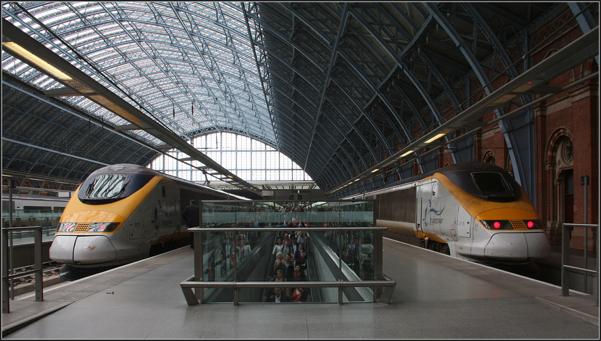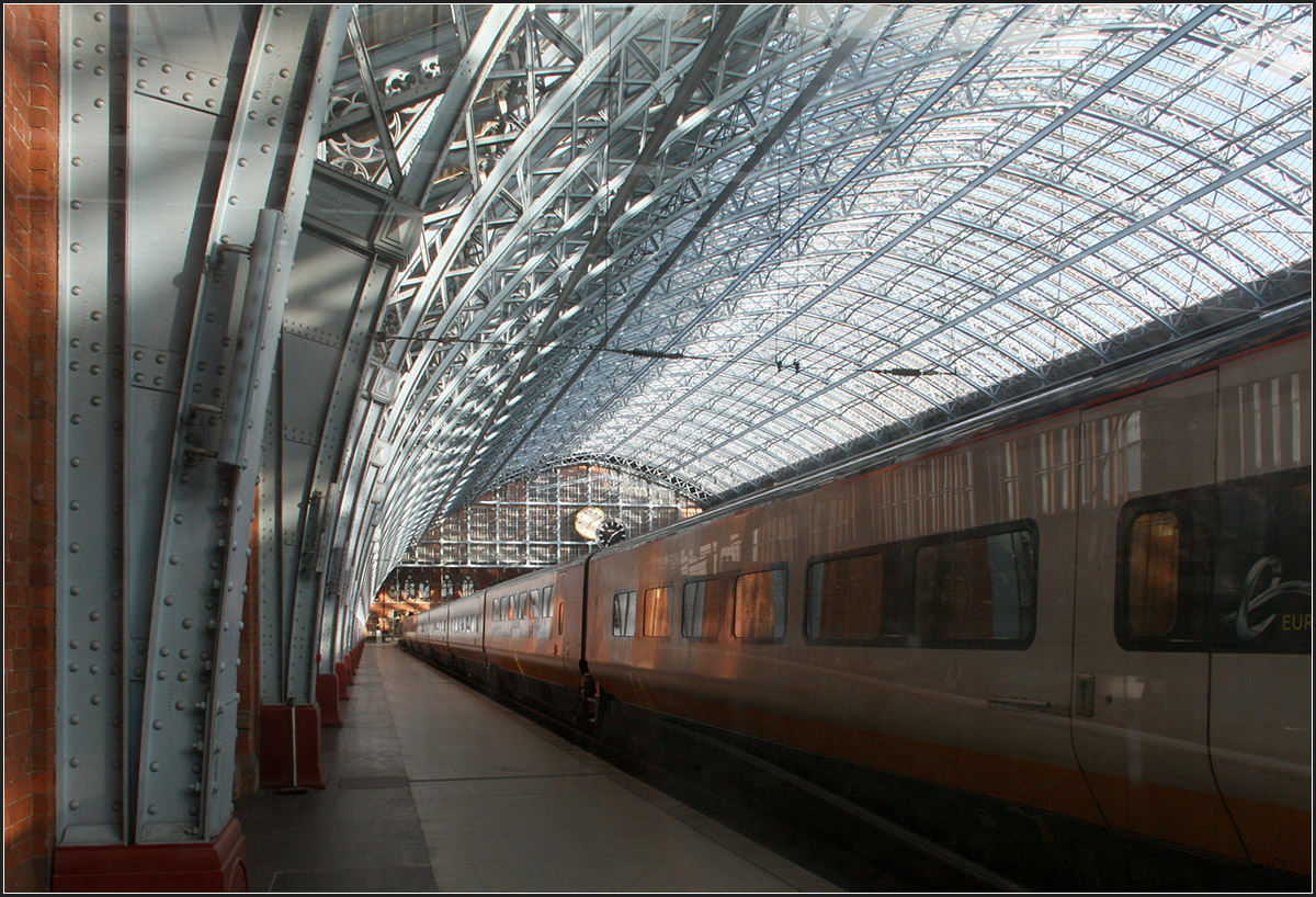 Bahnhof London St. Pancras International mit Eurostar-Zug.