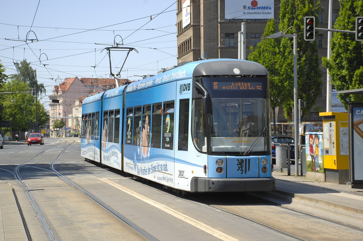 Tram K1 7005 ist am 28.06.2015 in Odessa unterwegs. Besonders schön hier mit der Werbung für den Mobilfunk Anbieter Kievstar.