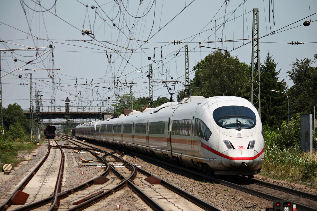 Ausfahrt von 401 069-0 "Worms" in Müllheim (Baden) am 25.07.2014 in Richtung Norden.