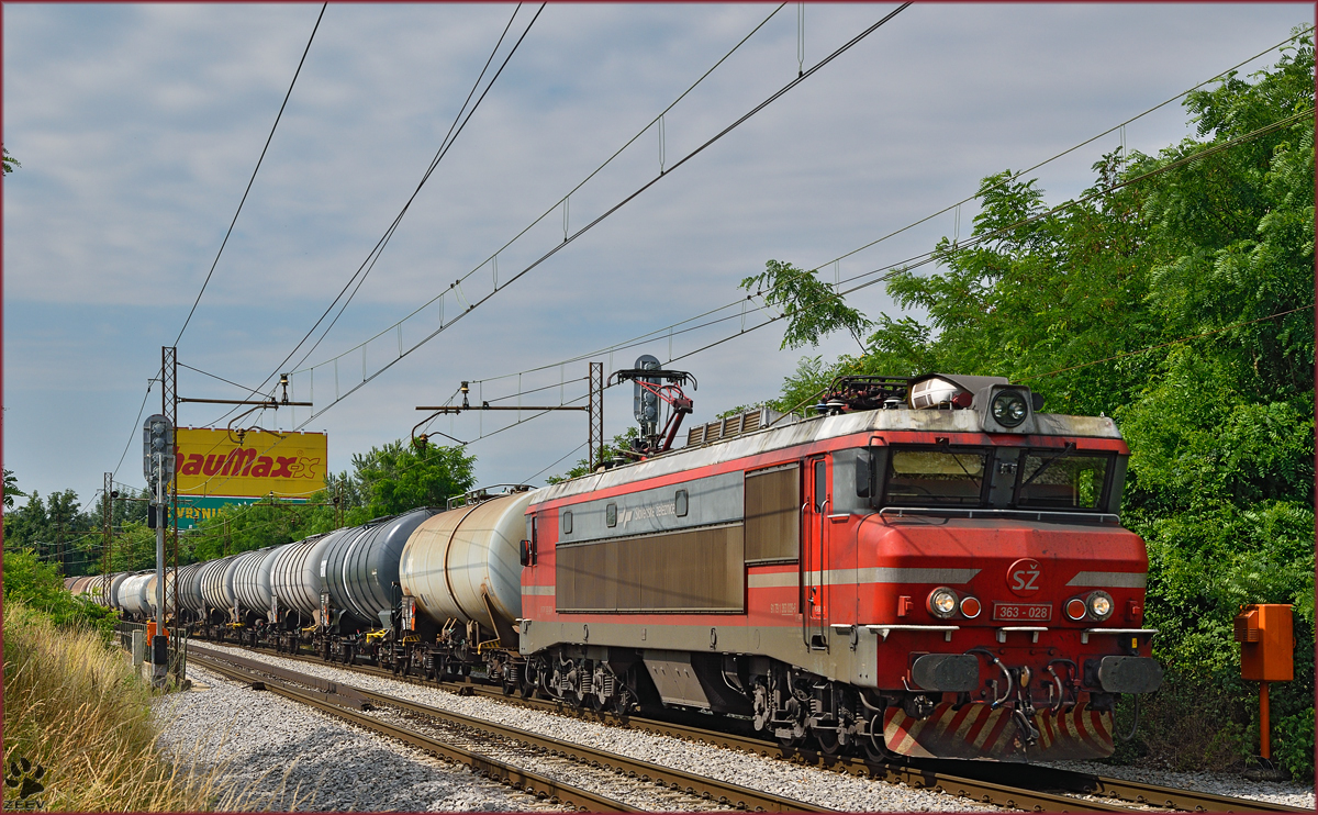 SŽ 363-028 zieht Kesselzug durch Maribor-Tabor Richtung Norden. /2.7.2015