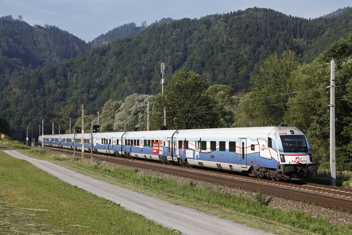 Steuerwagen 80-90.751 als Railjet zwischen Pernegg und Bruck an der Mur am 5.07.2015.