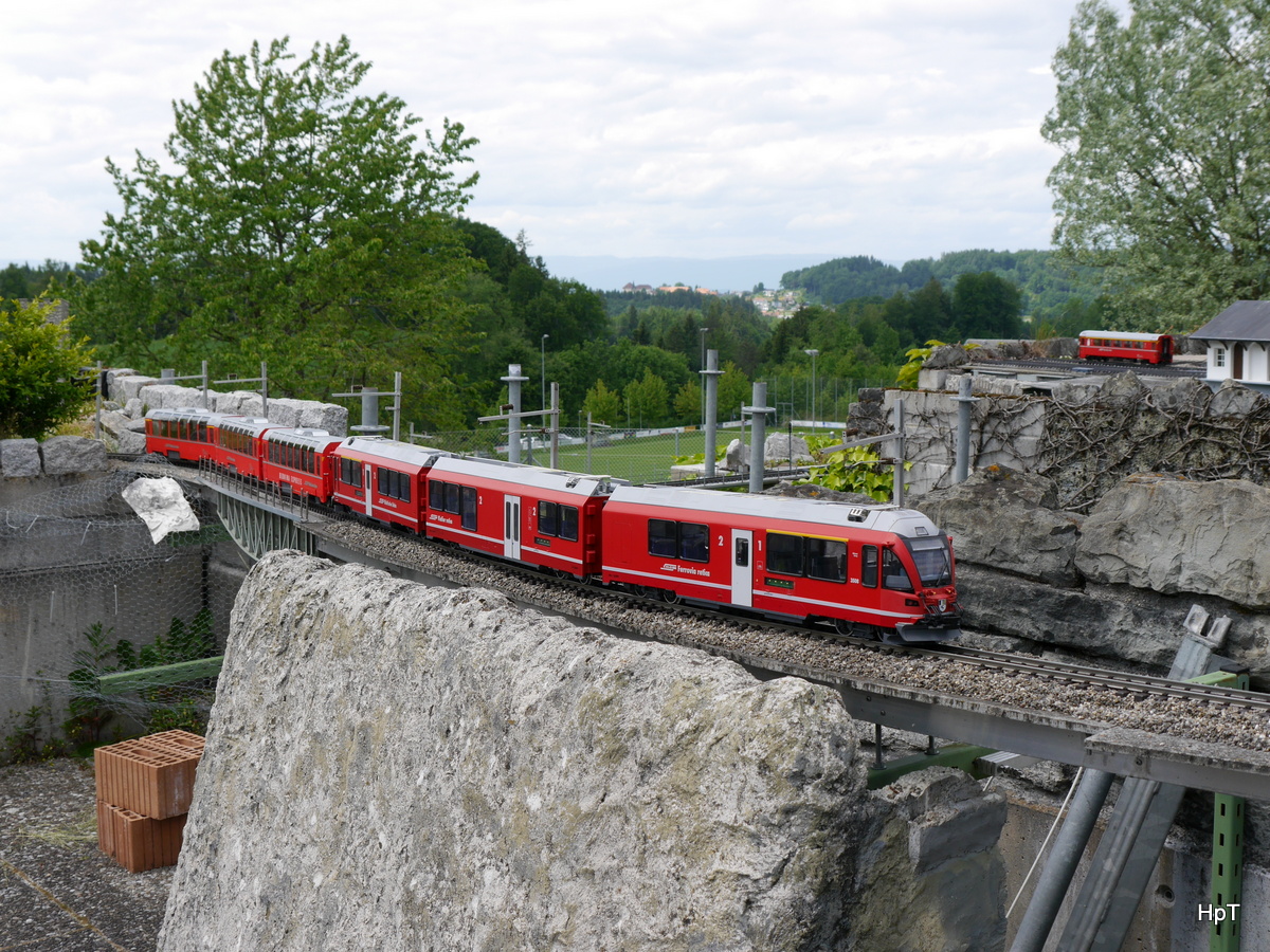 Stiftung Bernaville Schwarzenburg - LGB Triebzug ABe 4/12 3508 unterwegs auf der Anlage am 30.05.2015
