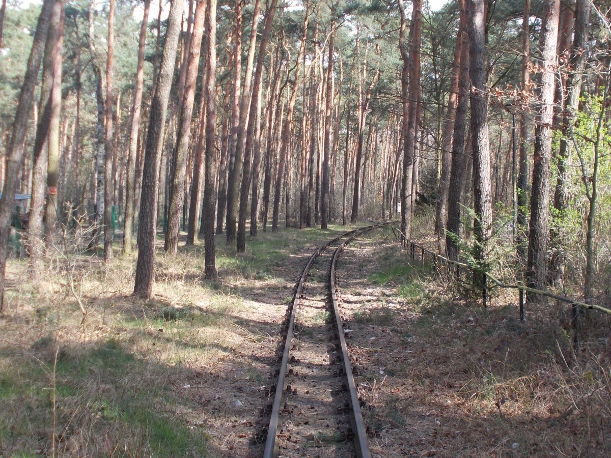 Von unzähligen Bahnübergangen aus lassen sich der Streckenlauf der Berliner Parkeisenbahn fotografieren.Aufnahme vom 11.April 2015.