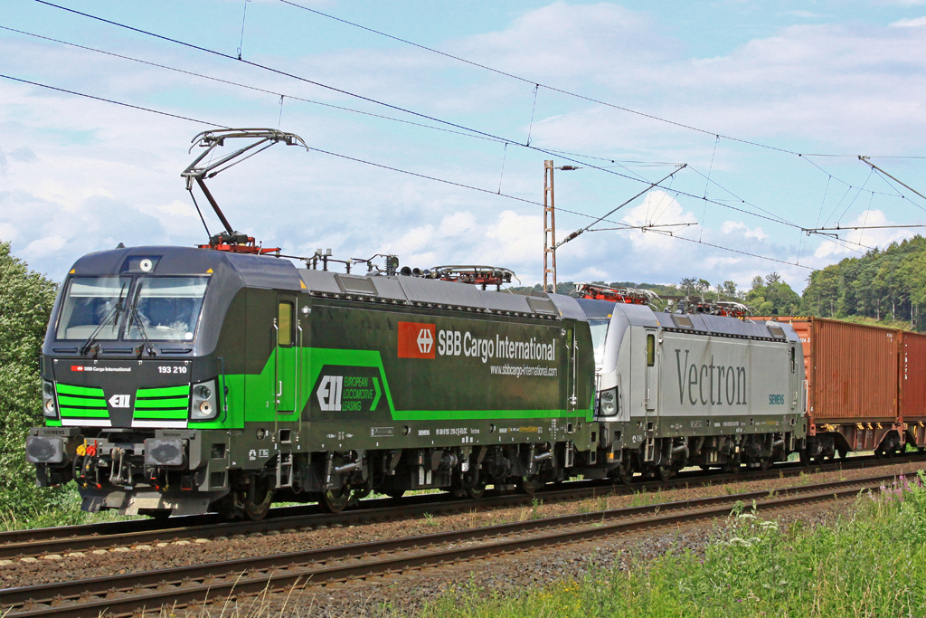 Vectron 193 210-3 D-ELOC u. 193 821-6 D-PCW am 09.07.2015 16:30 nördlich von Salzderhelden am BÜ 75,1 in Richtung Göttingen