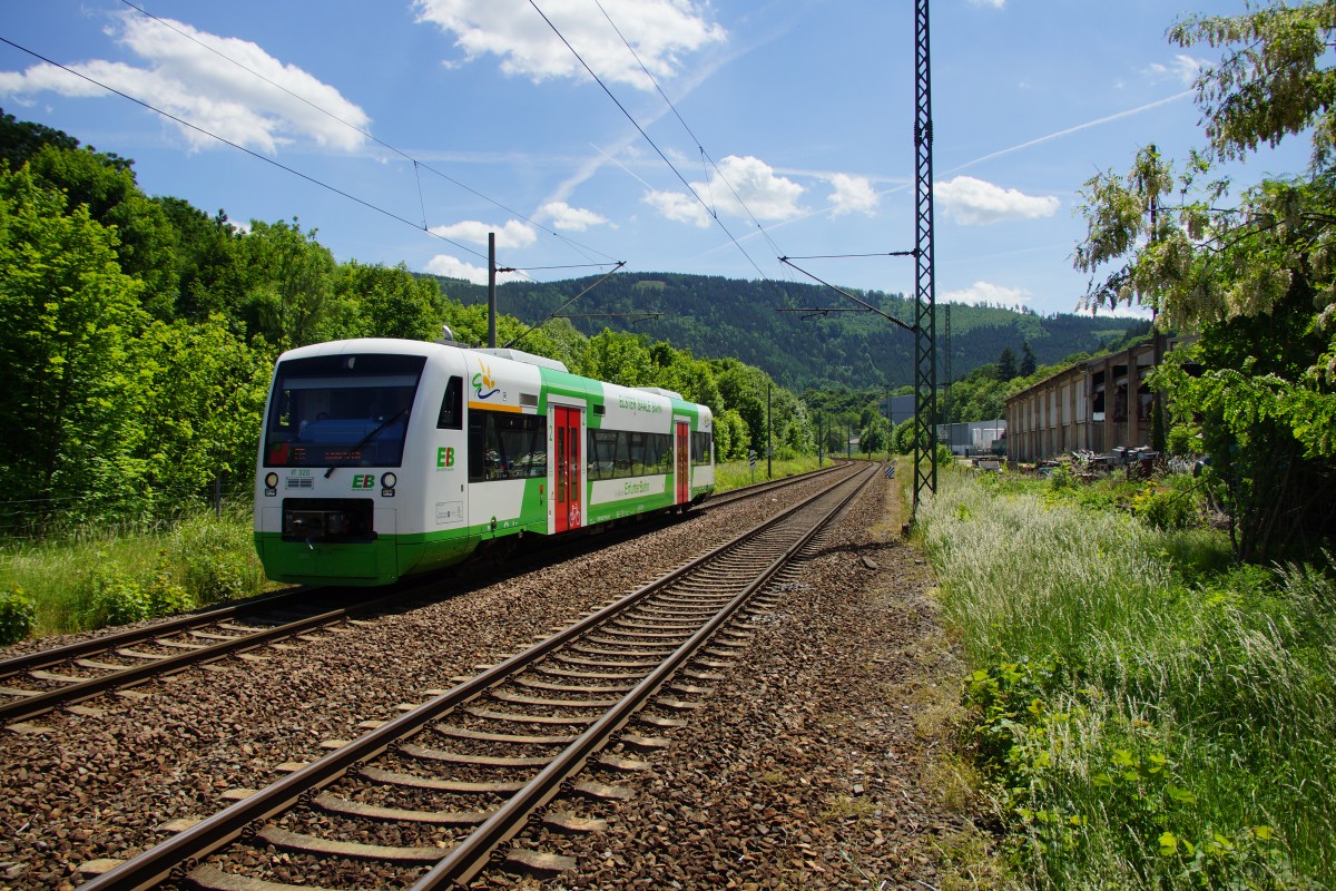 VT 320 von der Elster Saale Bahn ist in Richtung Saalfeld/S. unterwegs abgelichtet in Kaulsdorf/Saale am 03.06.15.