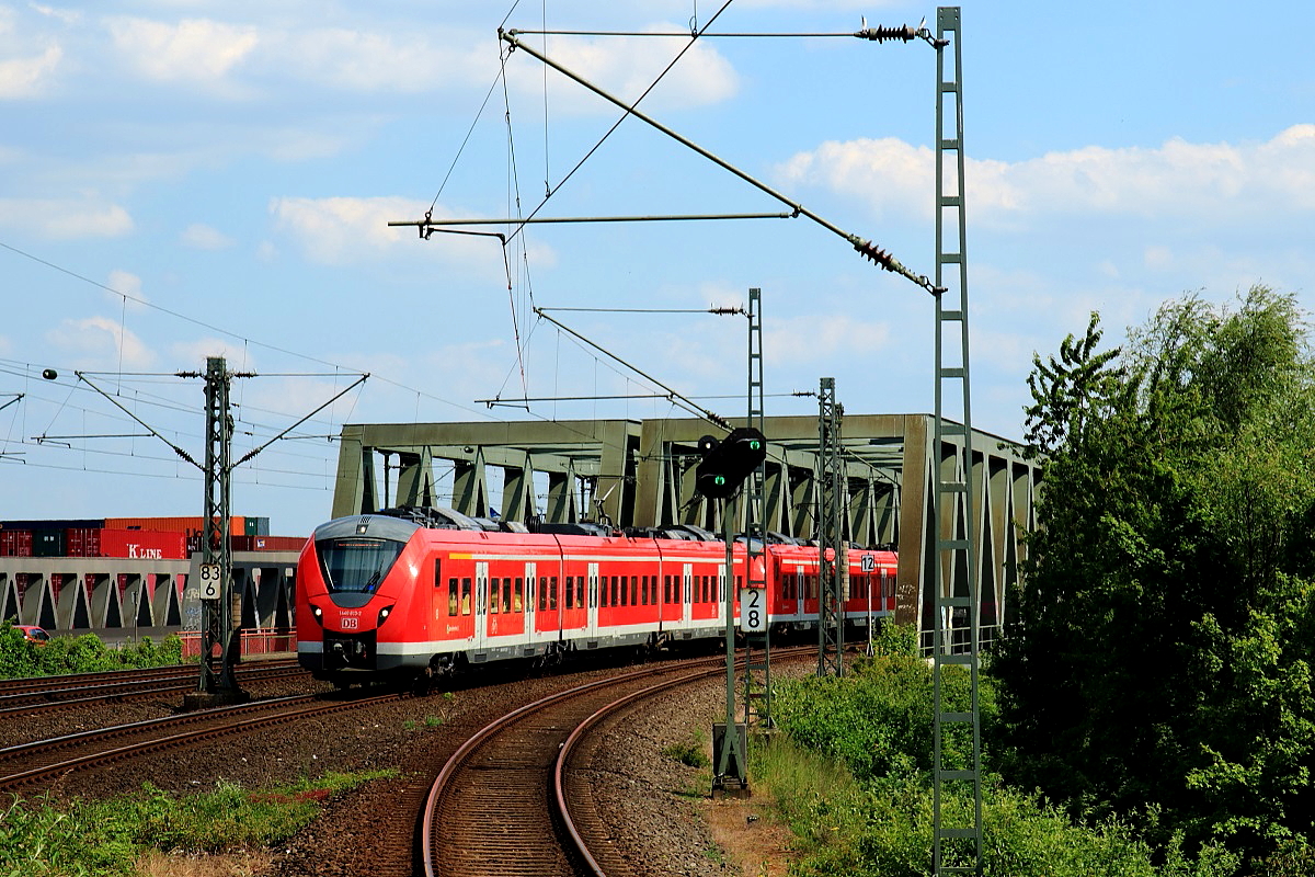 Am 08.06.2015 überqueren zwei 423 die Rheinbrücke zwischen Neuss und Düsseldorf