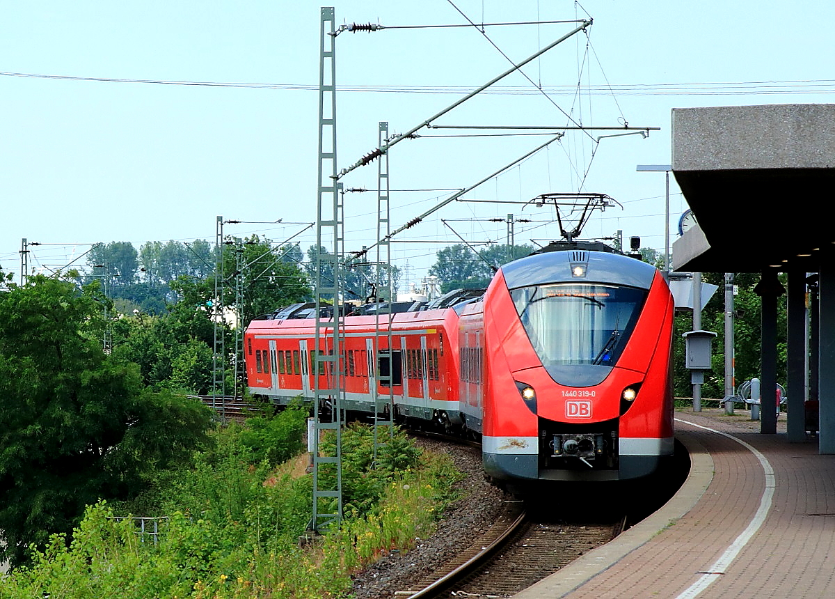 1 440 319-0 und ein weiterer 1 440 fahren am 11.06.2015 in die S-Bahn-Station Neuss Am Kaiser ein