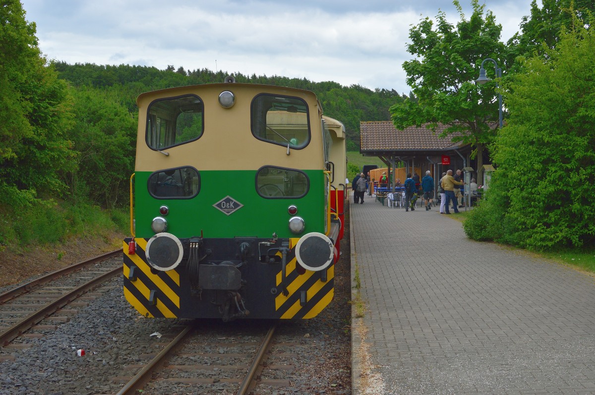 Fensterblick aus dem ehemaligen Mosbach-Mudauer Halbpackwagen.....vorne zieht die D1 der Brohltalbahn den Zug gerade durch die Gemarkung von Niederzissen.
