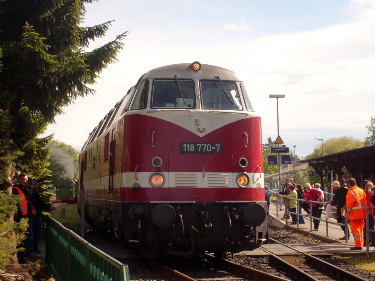 Diesellok 118 770-7 von der ehemaligen Deutschen Reichsbahn , war am 30. 05. 2015 in Putbus / Rügen zu Gast.