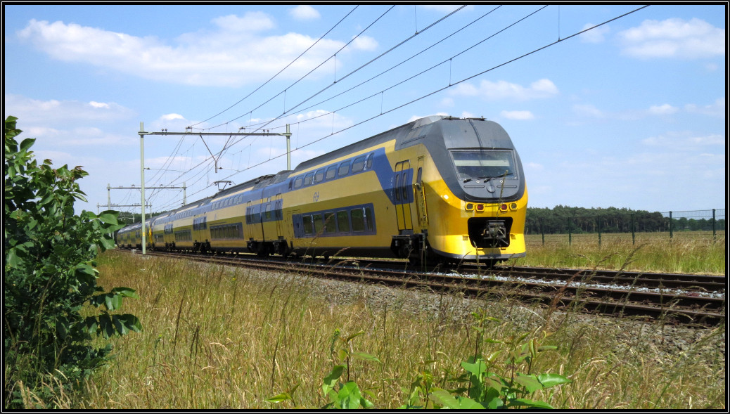 Ein Virm Triebwagen ist unterwegs nach Roermond,hier zu sehen unweit von Echt (NL) am 10.Juni 2015.