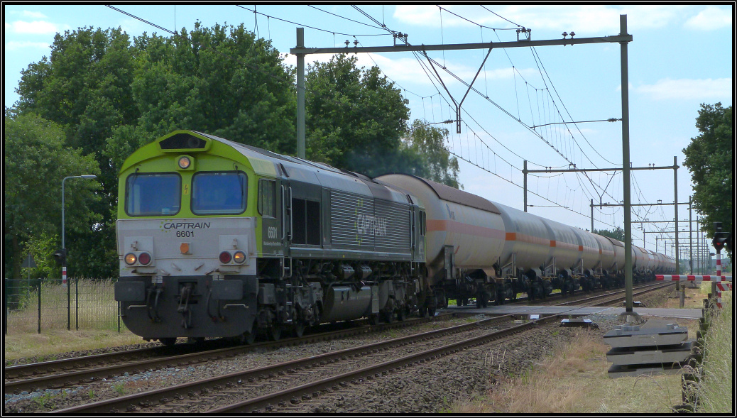 Eine dicke Fotowolke verdeckte gerade die Sonne ,als die Captrain Class 66 mit ihren