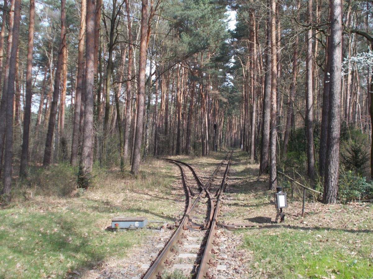 Mitten in der Wuhlheide eine Abzweigstelle der Berliner Parkeisenbahn am 11.April 2015.