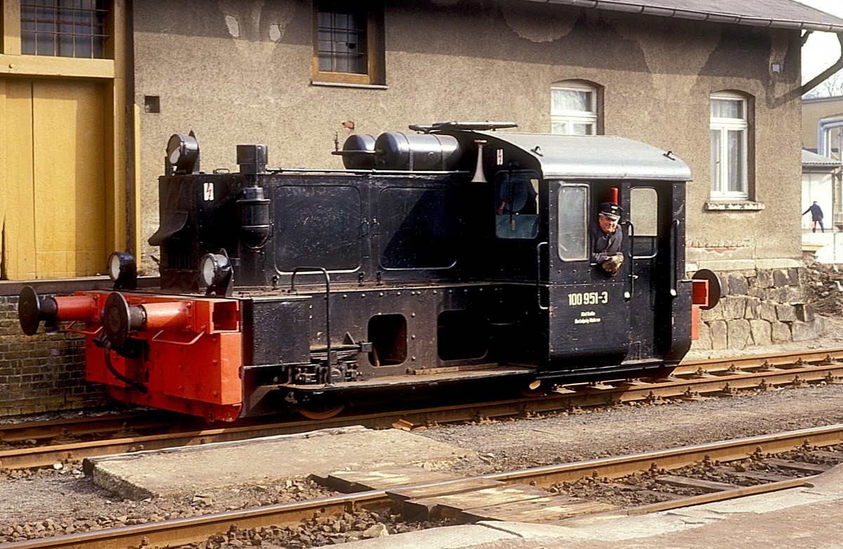 Im August 1982 ist die frisch lackierte 1045.01 der Montafonerbahn (ex ÖBB) im Bahnhof Schruns abgestellt