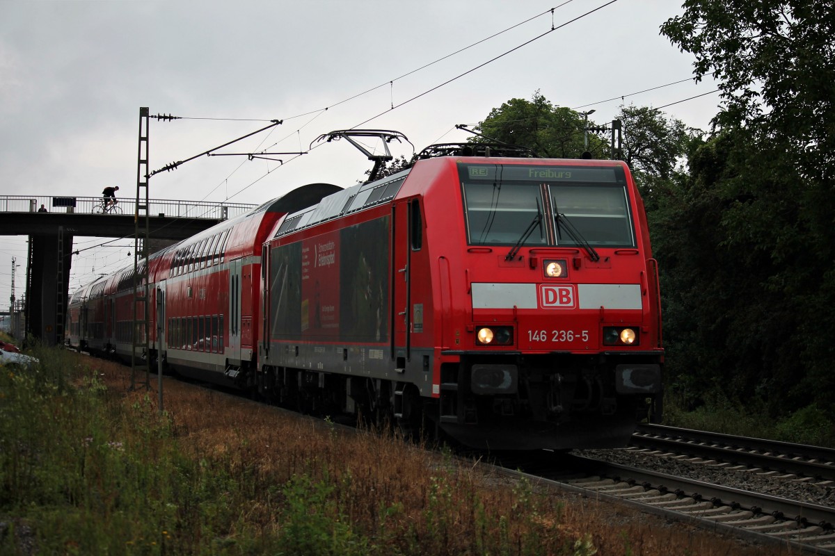 Ausfahrt am 12.07.2014 von 146 236-5 als RE (Offenburg - Freiburg (Brsg) Hbf) in Orschweier.