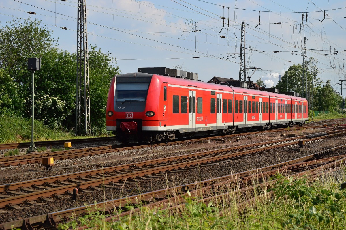 Halbzug 425 024 als RE8 nach Mönchengladbach, hier verlässt der Zug gerade Grevenbroich. 9.6.2015