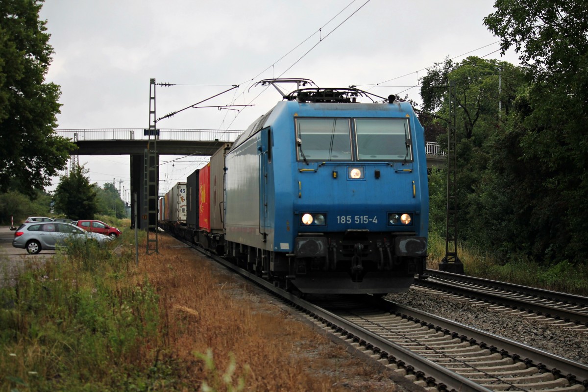 Railtraxx 185 515-4 am 12.07.2014 mit einem Containerzug in Orschweier gen Süden.