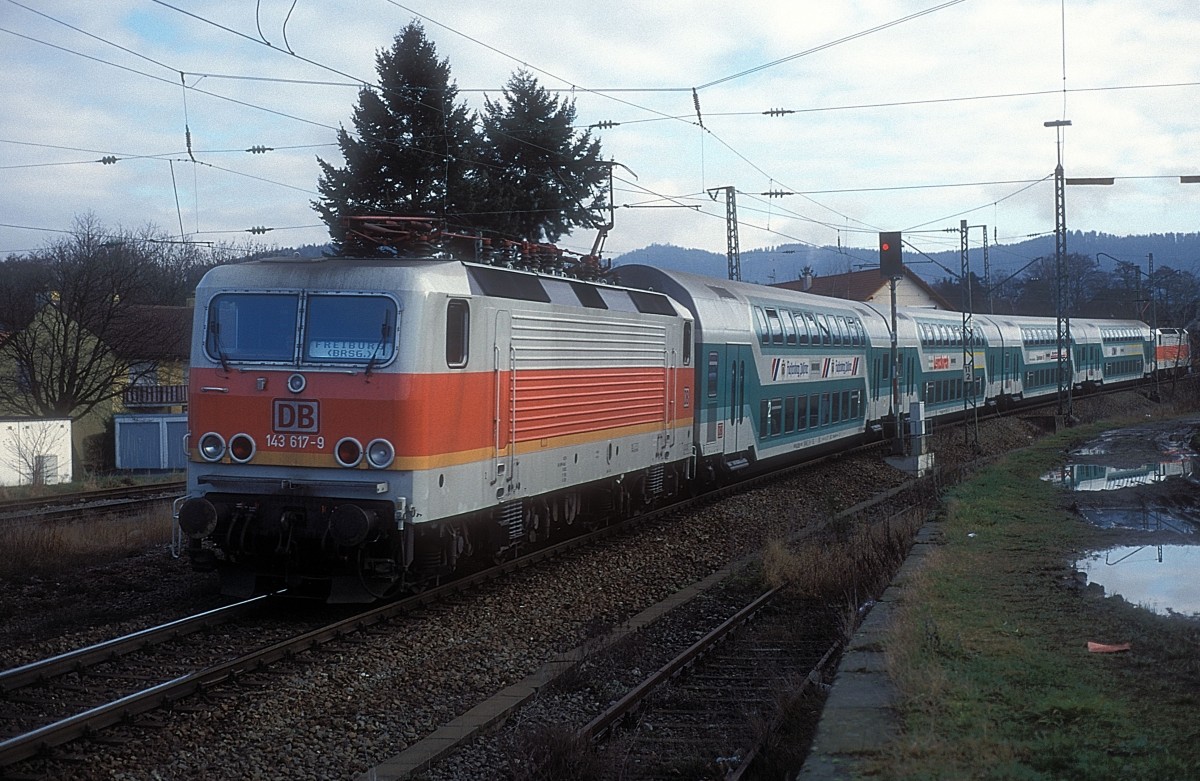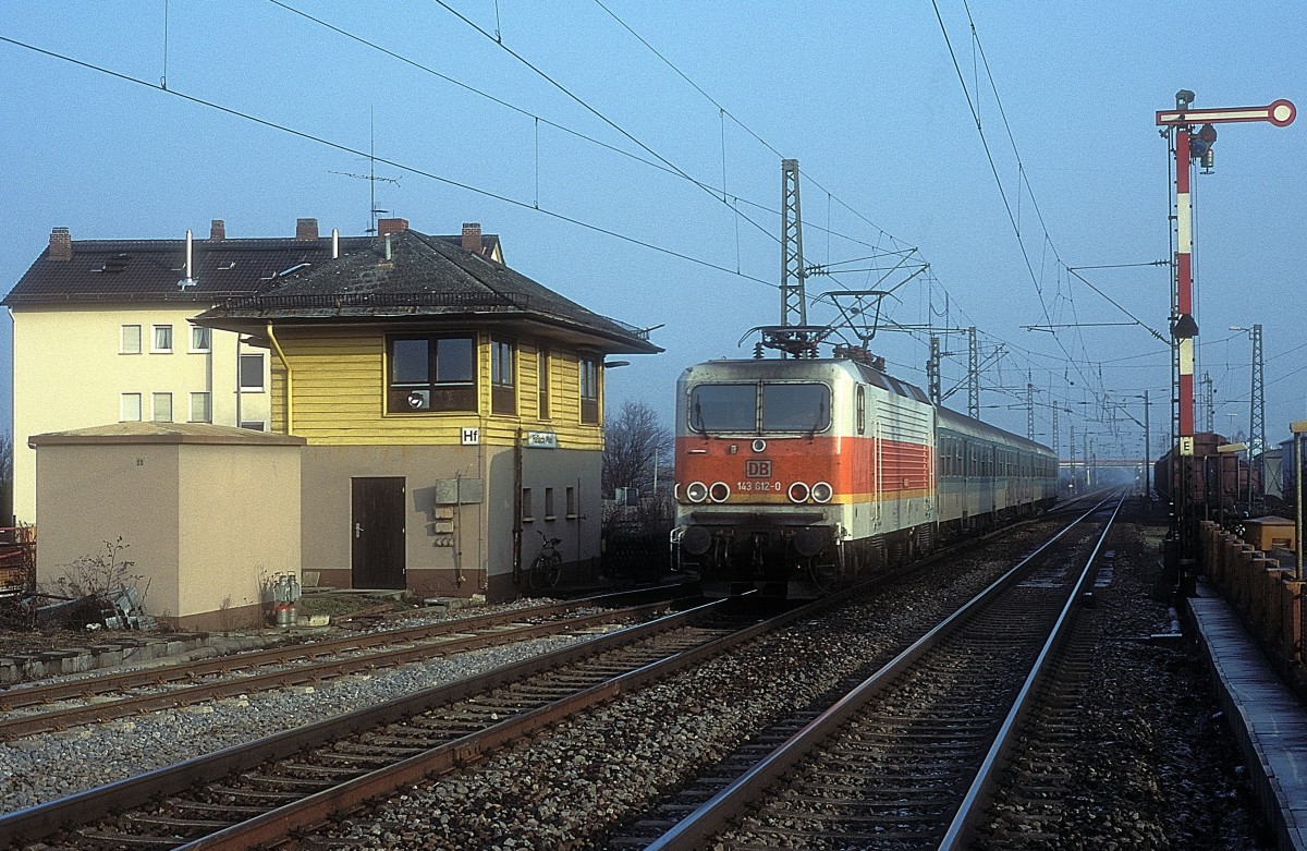 Ein Eilzug nach Nürnberg fuhr am 14.10.94 ohne Halt in Strullendorf durch Gleis 3. Ganz links das Gleis 4 der ex-KBS 824 nach Schlüsselfeld mit den Überresten des Schüttbahnsteigs. Mintgrün-weiße Steuerwagen waren damals topaktuell...